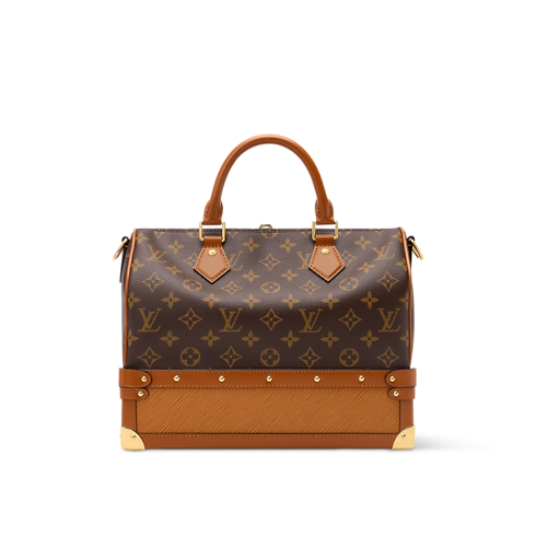 オリジナルモデルのバッグ「スピーディ 30」はもともと、自由な表現と旅を讃えるためにデザインされたもの。そしてこの「アウト オブ ザ トランク」のテーマで再解釈された「スピーディ・バンドリエール 30」もその想いを受け継いでいます。堅牢なレザーのベースとメタリックのコーナーが伝統的なルイ・ヴィトンのラゲージにオマージュを捧げ、上部にはメゾンのシグネチャーであるモノグラム・パターンをあしらいました。必需品がしっかり収まるサイズで、内装にはフラットポケットも完備。