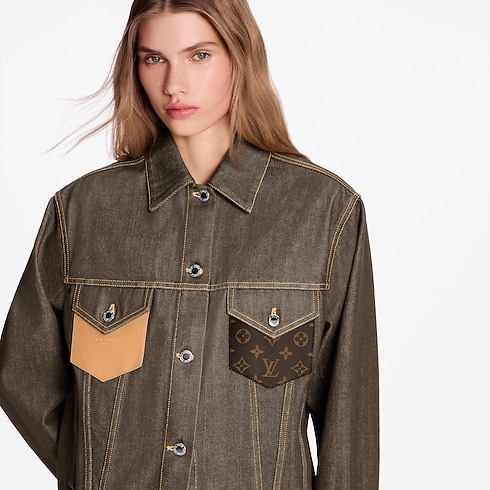 今シーズンならではのエレガントな色合いで新たに登場した定番デニムジャケット。イエローのトップステッチが構造を引き立てる1着です。メゾンのエンブレマティックなバッグ「スピーディ」から着想を得て、左ポケットはモノグラム・キャンバス、右ポケットは「Louis Vuitton Paris」シグネチャーをエンボス加工で施したヌメ革で仕上げました。