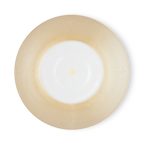 あらゆる料理を美しく引き立てる、アイキャッチーなデザインの「Splendor Set Of 2 Presentation Plates」。上質な磁器にきらめくゴールドカラーのラインで縁取りを施し、中央にはルイ・ヴィトンのシグネチャーであるモノグラム・フラワーをさりげなく配しました。「スプランドゥール」コレクションの他のアイテムとのコーディネートを楽しめるプレシャスなプレートは、エレガントで楽しい食事時間を演出します。