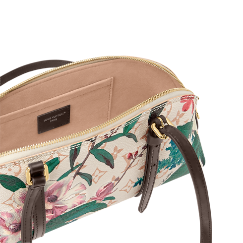 「モノグラム・エデン」コレクションの一部として登場した「スクワイア EW」。カラフルなフローラル・パターンがプリントされたモノグラム・デュンヌ キャンバスを使用し、シグネチャーのゴールドカラーのパドロック(錠前)で彩りを添えました。コントラストを効かせたレザーストラップが洗練された印象を与え、スマートフォンを含む普段の必需品を収納できる充分なスペースを備えています。