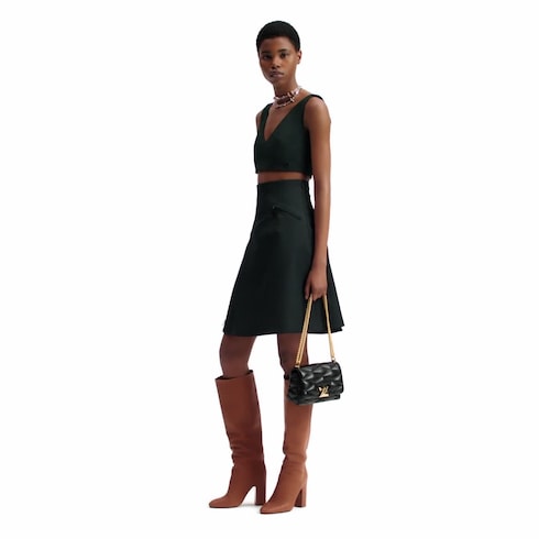 メゾンのアイコニックなテクニカルギャバジンで仕立てた、控えめな魅力を放つクロップトップ。ボディラインを引き立てる流れるようなシェイプにシャープなVネックを配し、背面にも同様のディテールを施しました。ウエストバンドには同系色のLV サークルのチャームをさりげなくあしらい、隠しファスナー開閉式ですっきりとしたシルエットを実現。