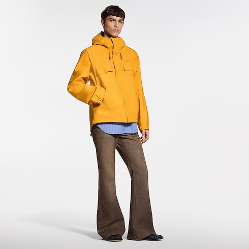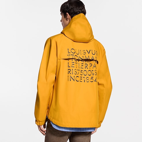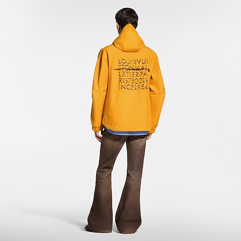 今シーズンのシックな登山のテーマから着想を得た、2026春夏のランウェイからのテクニカルパーカ。鮮やかなイエローのリップストップ素材で仕立てられ、胸元にはゴールドカラーの「Louis Vuitton Paris」シグネチャーがあしらわれています。背面には、大胆にプリントで施されたLV アルファベットのモチーフがグラフィカルなアクセントをプラス。