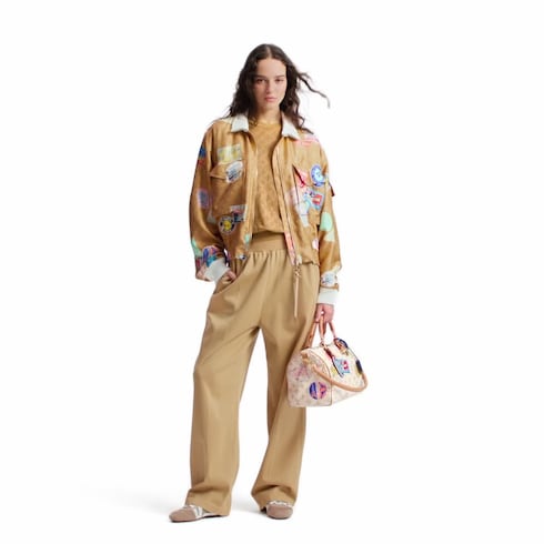 「フライト・モード」カプセル・コレクションに登場したシルクツイルのボンバージャケット。繊細なマヒナ・モノグラム モチーフに、多彩な「Louis Vuitton」シグネチャーのトラベルパッチでひねりを加えた遊び心溢れるプリントがメゾンの伝統を彷彿させます。リブ編みのカラーとカフがスポーティな印象を添え、複数のフラップポケットが構築的な雰囲気を演出。