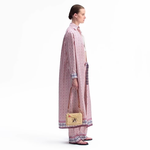 天然繊維を使い、職人技を駆使したアプローチでシックなフォルムに仕上げた「ツイスト PM」。メゾンのサヴォアフェール(匠の技)が際立つ一品です。リラックス感のあるフレンチ・リヴィエラのライフスタイルから着想を得て、ラフィア(ヤシ)素材にコントラストを効かせたレザーのトリミングとシグネチャーのLV ツイストロックをあしらいました。必需品を整理しやすい複数のポケットと取外し可能なミラーを内装に備えたアイテム。