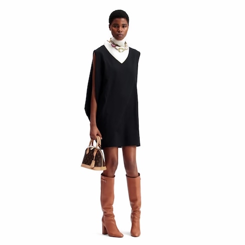 今シーズンならではの洗練されたコードでコンテンポラリーな雰囲気にアップデートしたTシャツドレス。柔らかく通気性のよいコットンジャージーで快適な着心地のストレート & スリーブレスのシェイプに仕立て、アシンメトリーなレイヤーのひねりがシルエットに優美なドレープ風の効果を添えています。リブ編みのネックラインには、ゴールドカラーのLV チェーンのディテールでシックなシグネチャータッチをプラス。