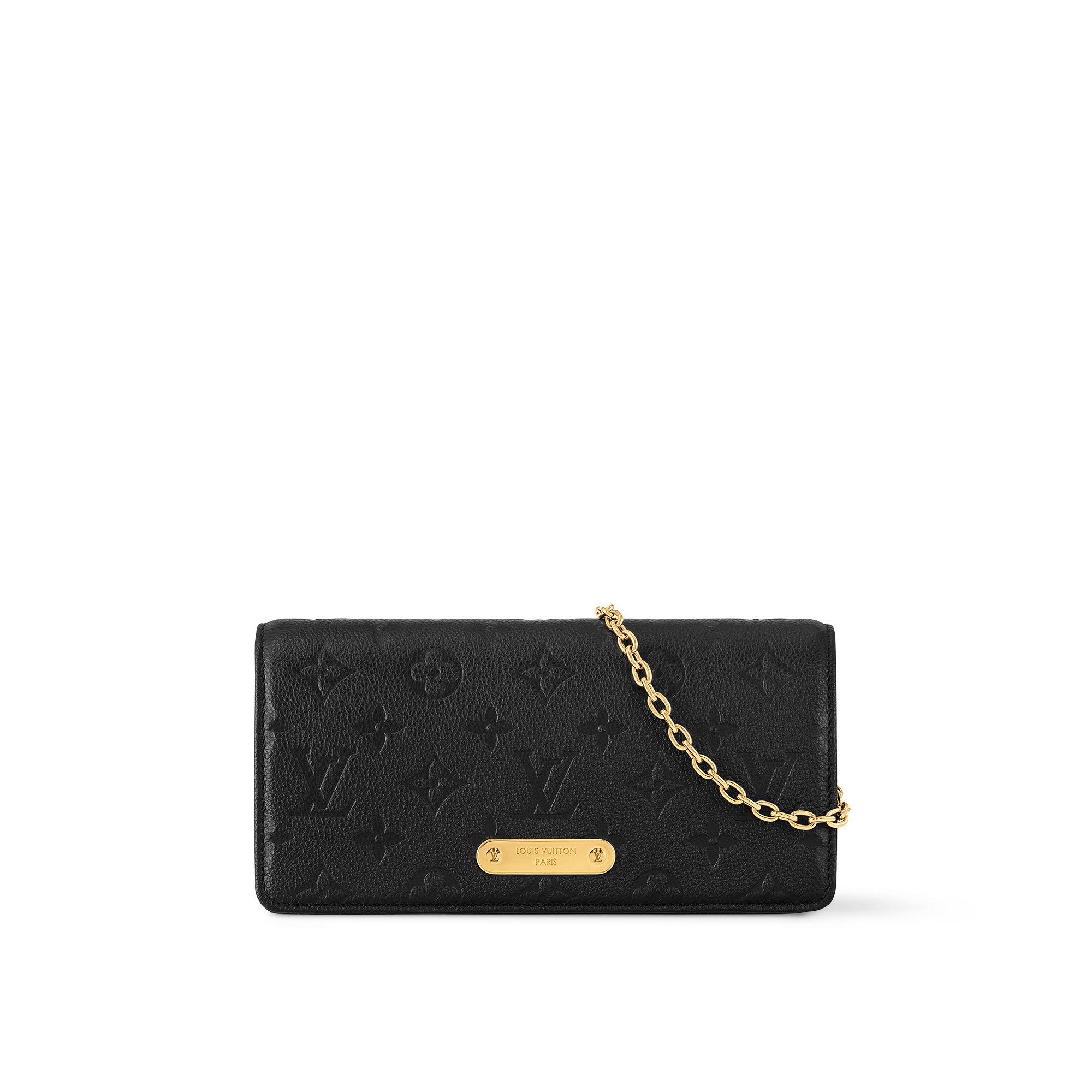 洗練された長方形のフォルムにさりげなくレトロな雰囲気を組み合わせ、モノグラム・キャンバスで仕上げた「ウォレット オン チェーン・リリー」。フラップはゴールドカラーのプレートで彩りました。プレートにはビス(鋲)を添え、「Louis Vuitton」シグネチャーの刻印で個性をプラス。デイタイムからイブニングシーンまで活躍する、充分な収納力のあるアイテムです。LV サークルのチャームをあしらった取外し & 調節可能なチェーンで、さまざまな持ち方をお楽しみいただけます。