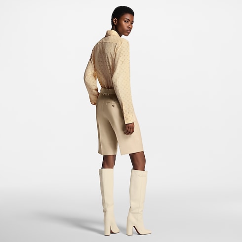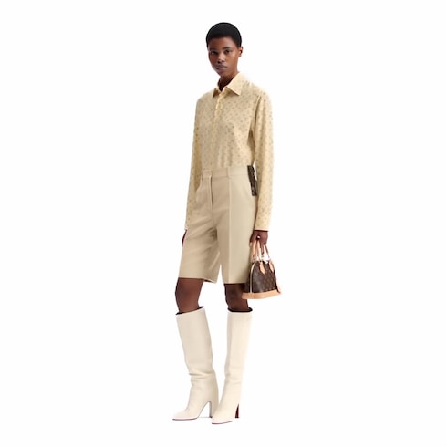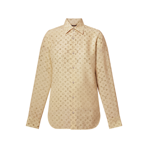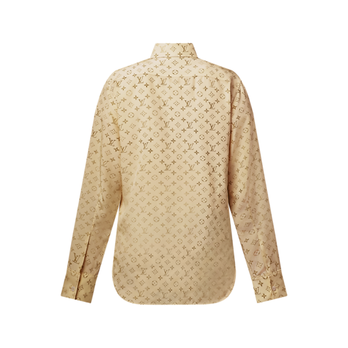 万能なストレートシェイプに仕立てたスマートで夏らしいシャツ。今シーズンらしい洗練された色合いの、柔らかくなめらかなシルクデシン(ちりめん)素材を使用しました。幻想的な印象を生むウォッシュ加工を施したアイコニックなモノグラム・モチーフを全面プリントし、エレガントなパール風ボタンで留めるデザイン。