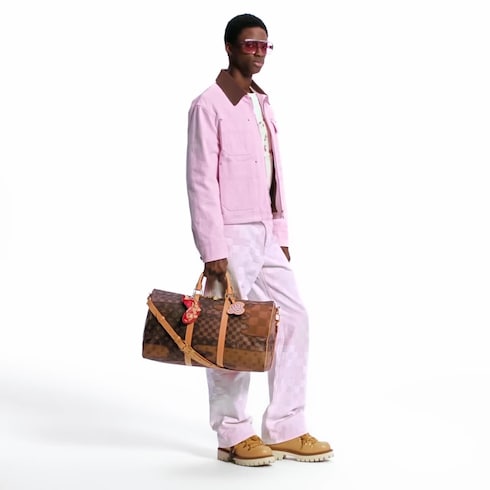 ファレル・ウィリアムスとNIGO®のコラボレーションにより2025秋冬コレクションに登場した、ファスナー開閉式のワークウェアブルゾン。NIGO®の日本のルーツを想わせるチェリーブロッサムピンクが目を引く1着は、キルティングを施した軽量のライニング付きで季節を選ばず活躍します。前面に配した「Marque L. Vuitton Déposée」のレザーラベルやコーデュロイ風レザーのリブ編みカラー、シックなパール風スナップボタンなど、スマートなアクセントが魅力。