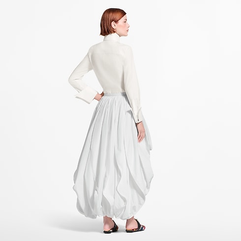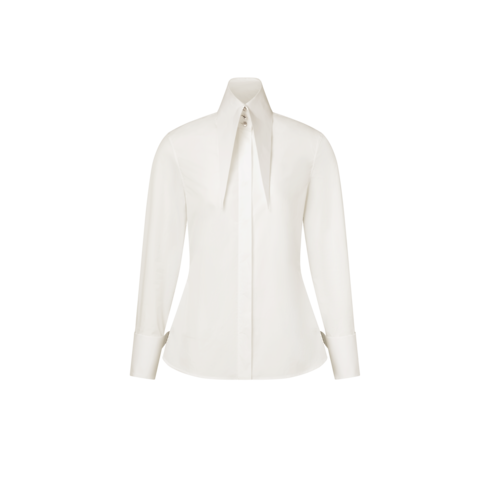 斑が織りなすコントラストが、ドラマティックな雰囲気を演出するシャツ。コットンポプリンをフィット感のあるシルエットに仕立て、フロントにはすっきりとした比翼仕立ての開閉部を配しました。大ぶりのポインテッドカラーがあしらわれたハイネックラインと、オーバーサイズの袖口が印象的なアクセントをプラス。メタリックなLV キューブボタンが、モダンでグラフィカルなスタイルを完成させます。