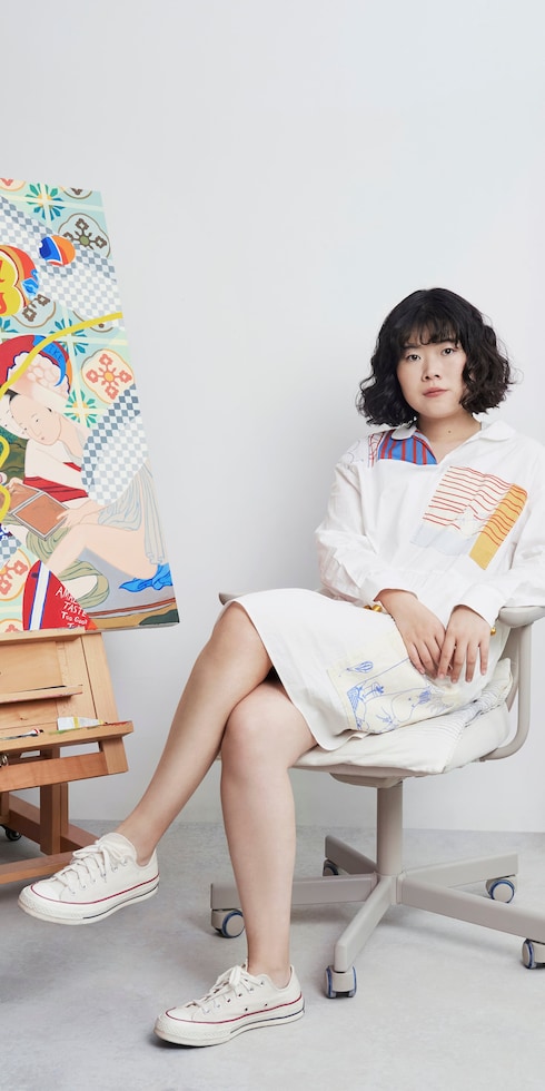 中国生まれのアーティスト ジピン・ワンは、静物画から幾何学パターンまで、絵画やイラストを通して、現代における不可避なデジタル広告を探求しています。