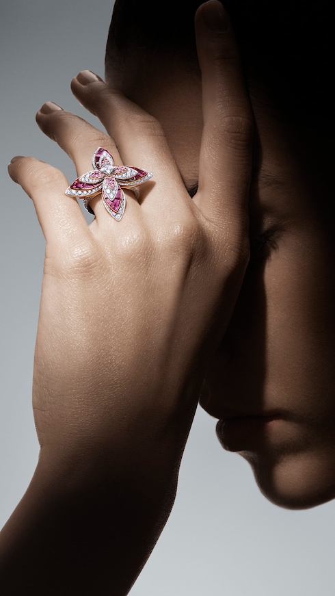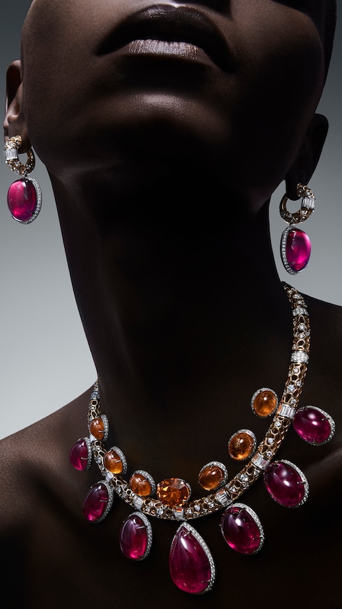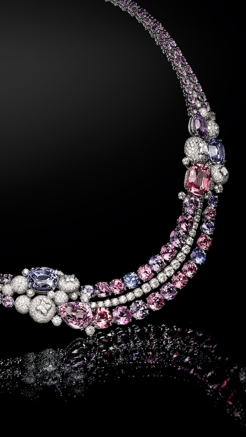 第2幕「Life」では生命がクリエーションを動かし、グラフィックが有機物へと変わりながら、複雑で洗練された宇宙を展開し、壮大なジュエリーの数々を生み出します。ダイヤモンドとカラーストーンの見事な対話により、これらのピースはテクスチャーの相互作用を魅力的に表現しています。