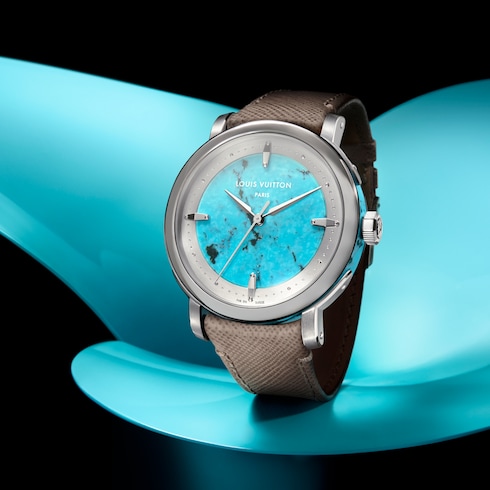 ウォッチ・コレクション「エスカル」から、タイガーズアイやマラカイト、ターコイズを組み入れた限定モデルが登場。天然の装飾石がダイアルとミドルケースを彩り、「ラ・ファブリク・デュ・タン ルイ・ヴィトン」のアーティスティック・ディレクター マチュー・エジと職人が考案した自然界の溢れんばかりの美を讃える鮮やかなデザインが、メゾンの大胆なサヴォアフェール(匠の技)を語ります。