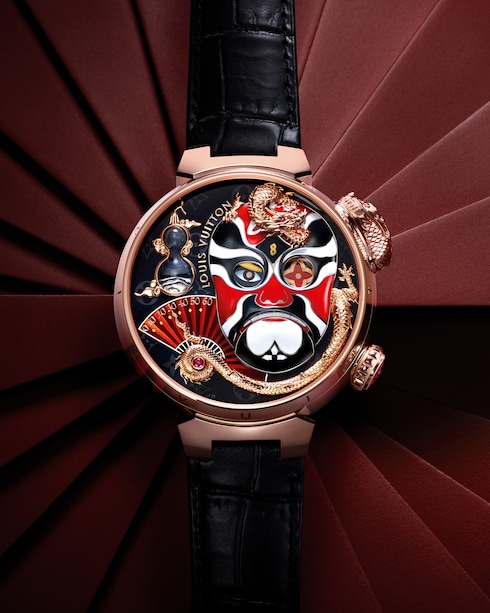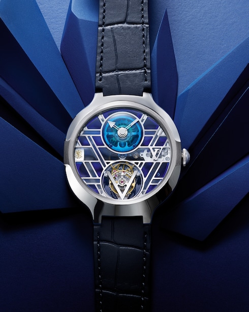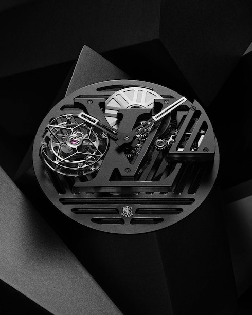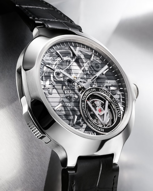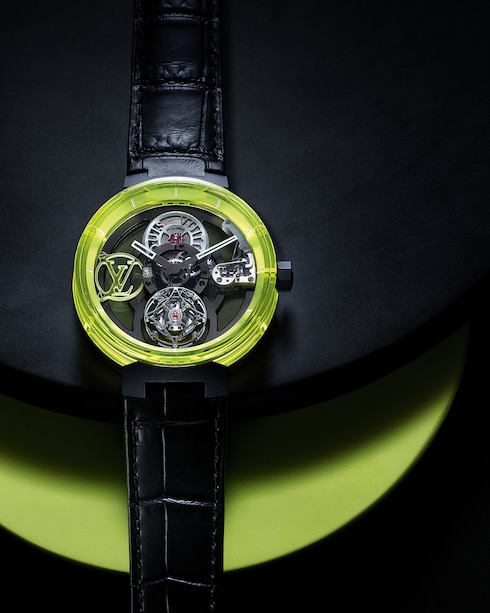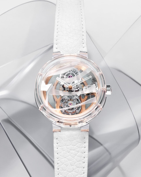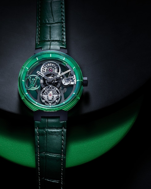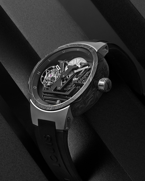 ルイ・ヴィトンのウォッチ「タンブール」を未来的、そしてよりテクニカルに解釈したタイムピース。オープンワーク構造とフライング トゥールビヨン機構によるアニメーションが特徴の軽量なデザインは、新世代にふさわしいこの上なくマスキュリンなウォッチです。