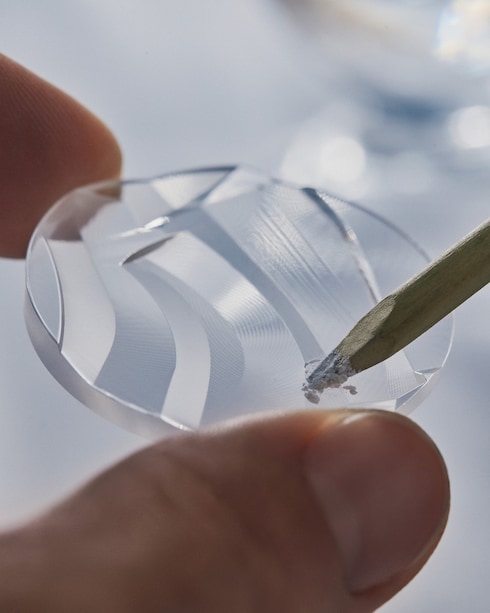 「タンブール ムーン フライング トゥールビヨン ポワンソン・ド・ジュネーブ 」は、サファイアクリスタルケースを採用した時計として史上初めてジュネーブ・シール認証を取得しました。わずか数年でサファイアクリスタルのカッティングと着色技術を習得したウォッチメイキングアトリエ「ラ・ファブリク・デュ・タン ルイ・ヴィトン」の緻密なクラフツマンシップと革新的な技術力により、2つの新色が加わりさらにコレクションが充実しました。