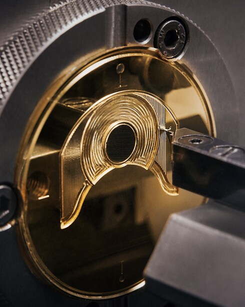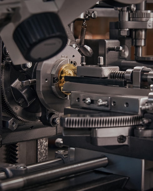 金属に装飾的なエングレービングを施す伝統的な技法であるギョーシェ彫りは、手作業と機械の完璧な調和を表現しています。ギョーシェ彫りの名工は熟練の技で機械を操り、比類のない繊細さと一貫性を備えた直線的、あるいは幾何学的なパターンを描き、さりげない光の戯れを演出します。特徴的なグラフィックのアクセントは、アトリエの洗練された時計製造によるクリエーションの証。