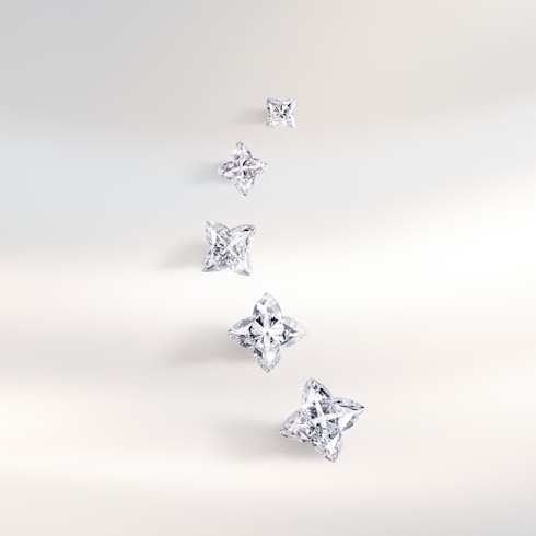 本コレクションでは、ルイ・ヴィトンのアイコニックなモノグラム・フラワーを再現した革新的なカットをご紹介。メゾンが開発した高度な専門的サヴォアフェール(匠の技)を要するこれらのダイヤモンドは、伝統的な技法に精通することで、独特で完璧なシンメトリーのシェイプと他に類のない多面的な輝きを生み出しています。