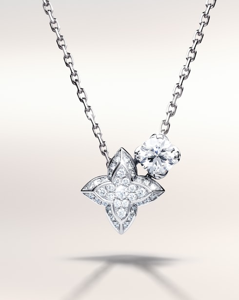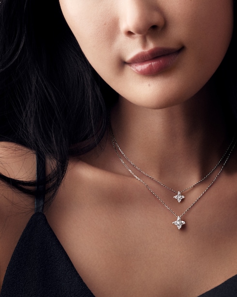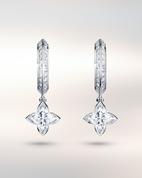 人生で最もかけがえのない瞬間を祝す「LV ダイヤモンド」のペンダントとピアス。アイコニックなモノグラム・フラワーから着想を得たそれぞれのクリエーションは、シグネチャーであるLV モノグラムスターカットダイヤモンドによって輝きを放ち、その類い稀なきらめきであらゆる感情の奥深さを表現します。