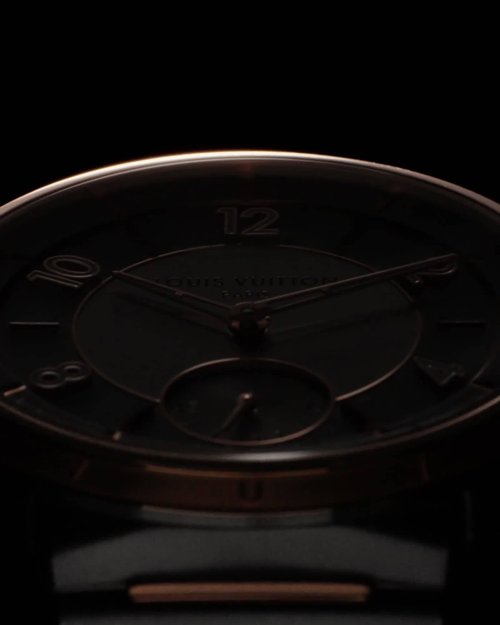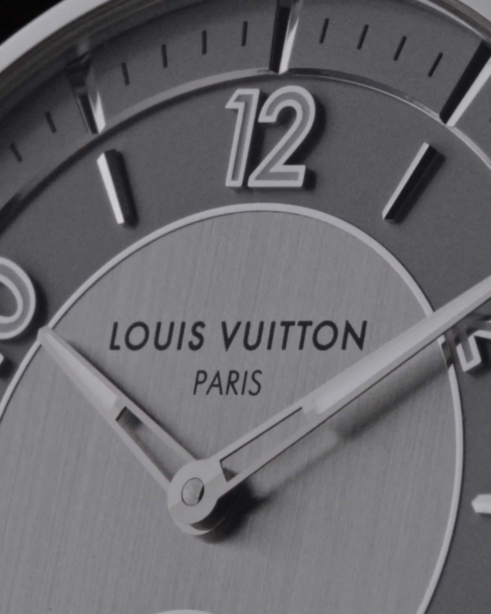 スイスのクラフツマンシップとメゾンの伝統であるパリ独自のセンスが調和した「タンブール」の最新作は、文字盤にシンボリックで新たなダブルシグネチャーをあしらっています:「LOUIS VUITTON PARIS」、「FAB. EN SUISSE」