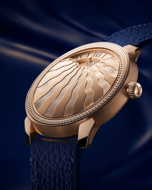洗練されたエレガンスを体現する本コレクションは、卓越した3つのタイムピースで展開。2つのローズゴールドモデルには美しい鏡面仕上げが施され、その内の1つには伝統的な手作業によるギョーシェ彫りも。もう1つは、795個のダイヤモンドをセットした光り輝くプラチナモデル。
