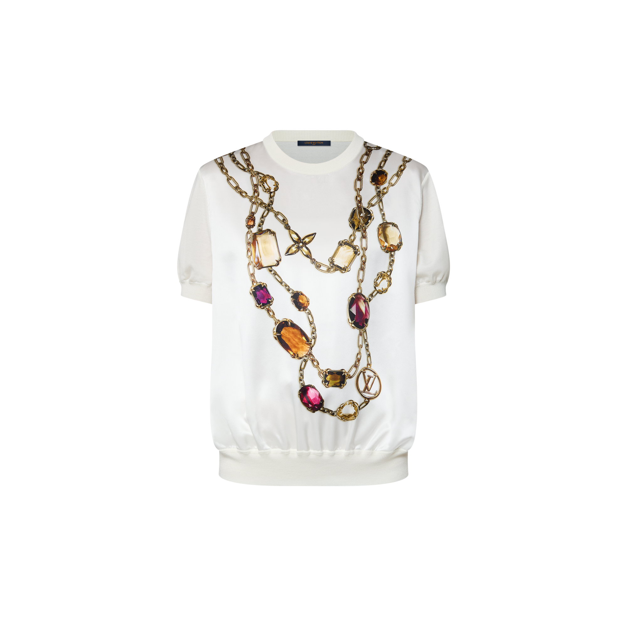 トロンプ ルイユ ネックレスプリント ニットトップ